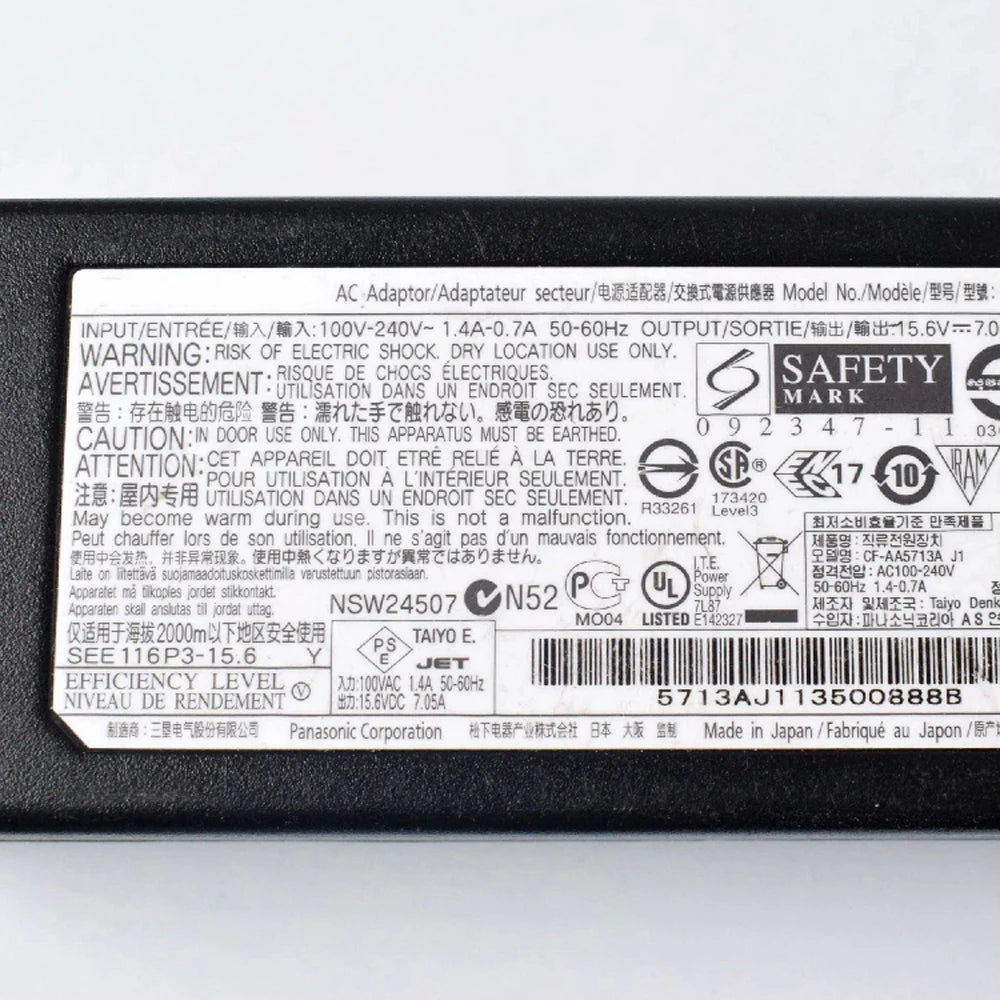 15.6V 7.05A AC DC Adapter For Panasonic Toughbook CF-31 Laptop Power Supply